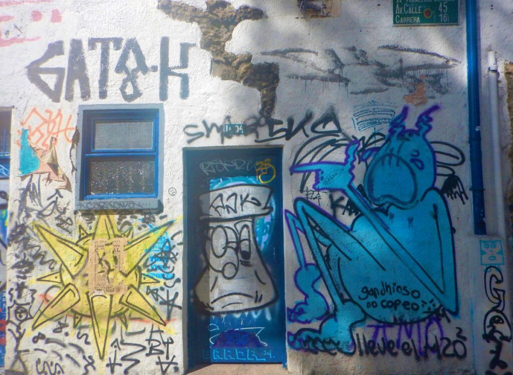The walls are in constant conversation. First, they’re decorated then they’re tagged, interrupted, shouted over. Murals loom and lecture: saints, martyrs, clenched fists, watchful eyes. Paint drips. Messages overlap. You can see the impatience in the lines, the speed of a hand that needed to say something before it was too late. The city reads itself aloud, one wall correcting the last.